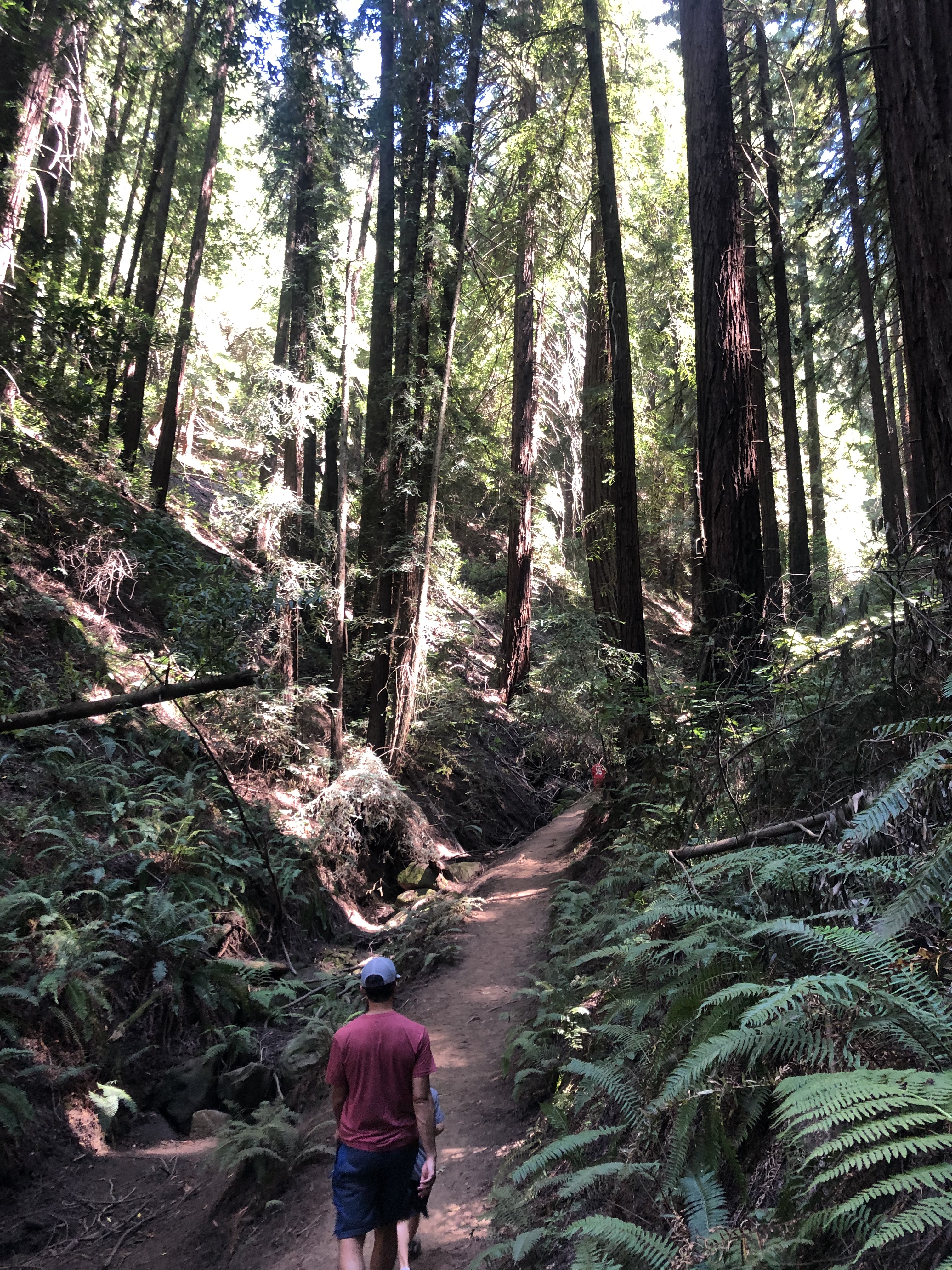 This hike takes you exploring beyond the redwoods. Most of this hike is not in the redwood trees. Park at the Skyline Boulevard Parking Lot near the Trudeau Center (11500 Skyline Blvd, Oakland, CA 94619). From the parking lot, start on the Dunn Trail to the left, behind the Trudeau Center. Follow the Dunn Trail for about 0.5 miles and veer left onto the Graham Trail. After about a mile, turn right onto the West Ridge Trail. After another mile or so, turn right onto the second marker for the Baccharis Trail (you will have passed the first trail marker for the Baccharis Trail along the way). Follow the Baccharis Trail for about half a mile, and you’ll reach a junction. Going right will take you back up to the West Ridge Trail. Instead, veer left and join the Dunn Trail. Hike the Dunn Trail back to the parking lot. This is a moderate hike, approximately 4.9 miles long. We last hiked this in June 2020 for Father’s Day.