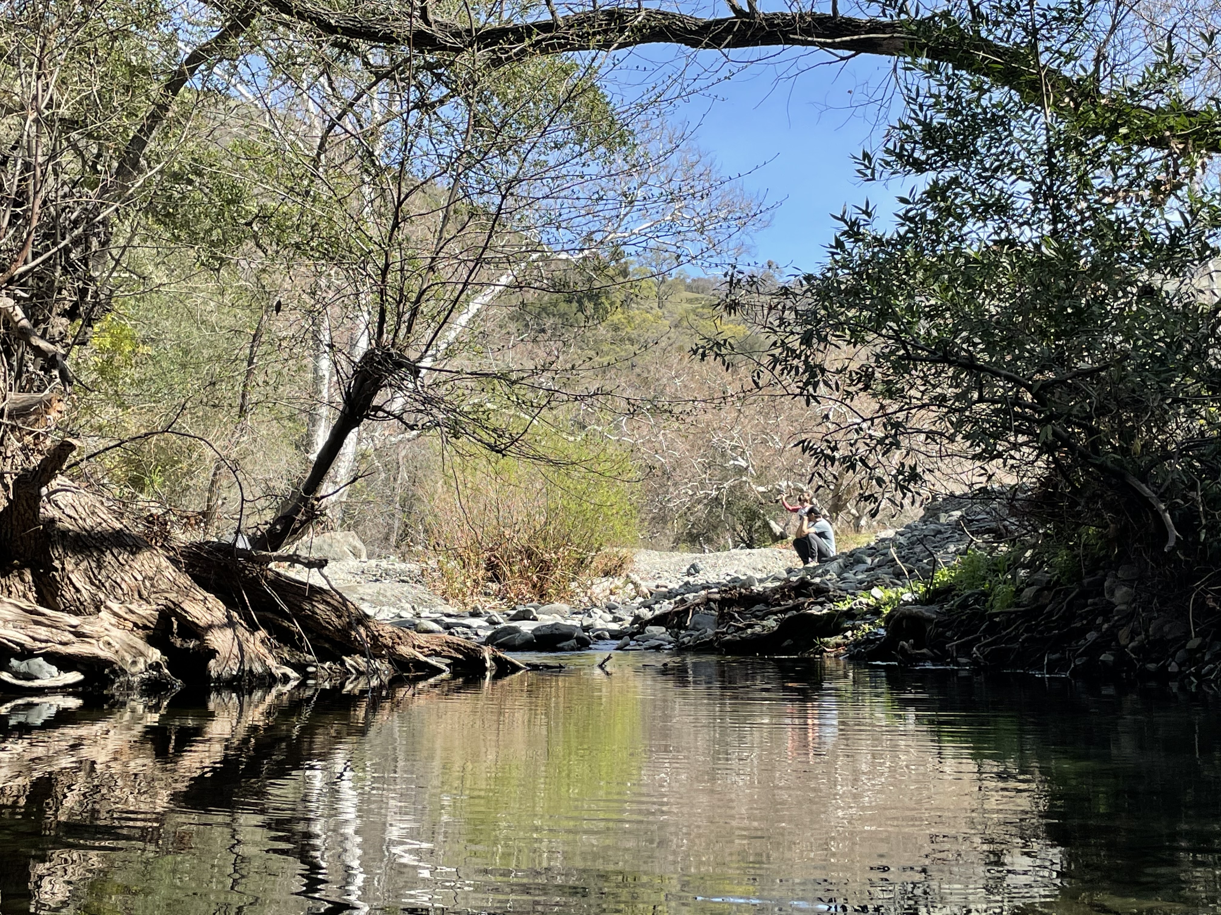 Start on Camp Ohlone Road, which takes you on a bridge over Alamo Creek. There are small trails down to the creek along the way, so use the opportunity to explore! Around 0.8 mile along Camp Ohlone Road, you’ll see huge boulders and waterfalls on your right. We had some rain the week before we hiked this loop, so the water was flowing nicely! Right around 1 mile, you’ll reach the Little Yosemite Area, where you’ll see signage and a restroom. If you hike up just a little further, you’ll see a small unmarked path down the right to a huge area with the creek, stones, and rocks all around. The kids liked hopping along and skipping rocks in the creek. Please note, however, that Little Yosemite is open to the public through a lease agreement with the San Francisco Water Department, which owns the property. The East Bay Regional Park District asks visitors to abide by the boundary signs and not trespass onto Water Department lands that are not part of the lease arrangement. As you take in your surroundings at Little Yosemite, you’ll see how this spot is reminiscent of the much grander Yosemite National Park.