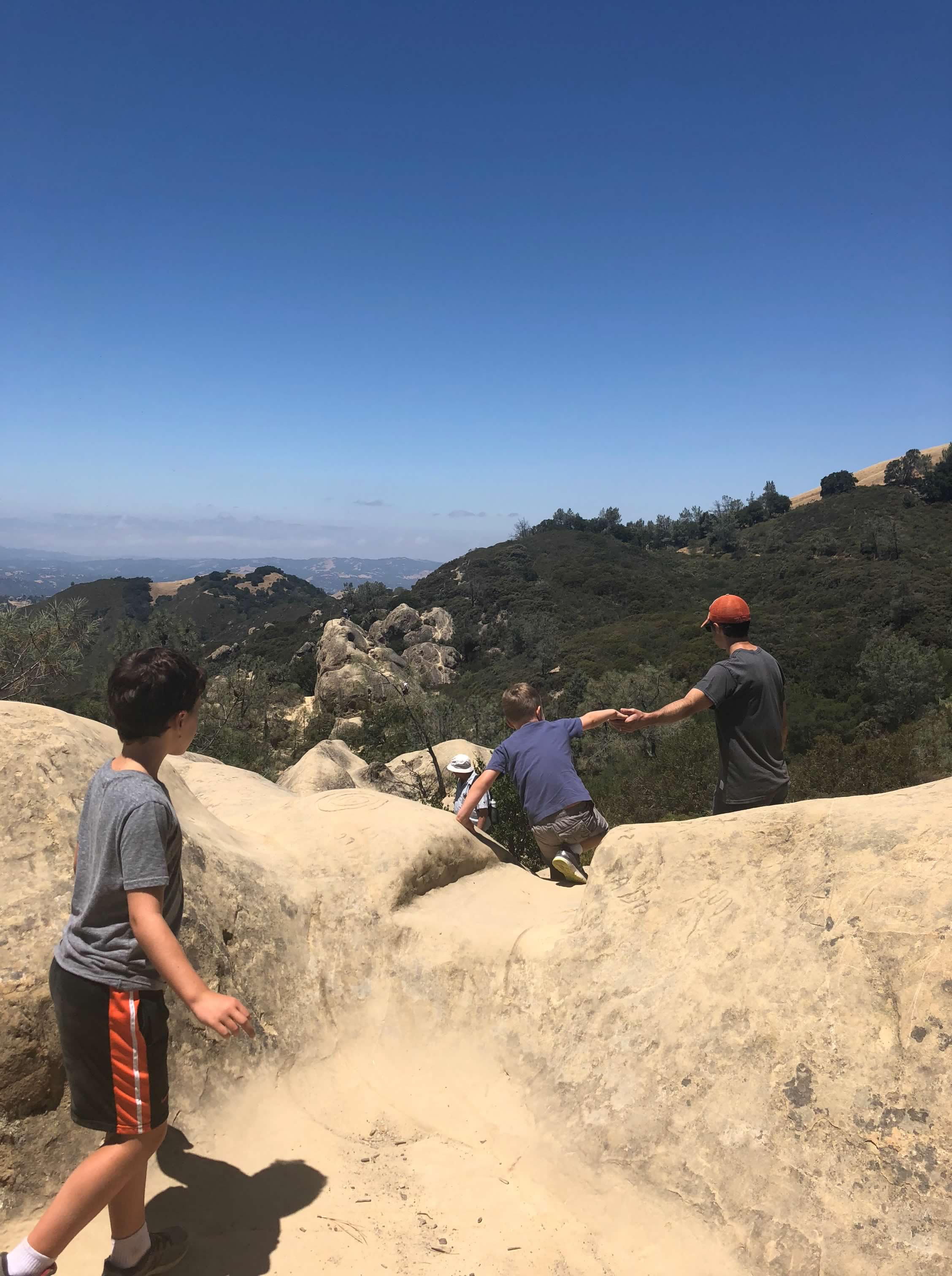 If you ever tire of the traditional trails through the forests and hills in the Bay Area, there are some really fun rocks and boulders to climb and explore! Here are three hikes that take us to some favorite rock parks and areas. Be prepared for very little shade on any of these hikes. Pack water and a small first aid kit, in case of any bumps and bruises from the rocks!