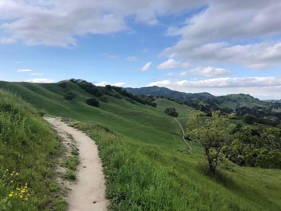 This is a moderate, approximately 3.5 mile, loop hike in the Mount Diablo foothills. Park at the Livorna Staging Area, off of Livorna Road in Alamo. Carefully cross Livorna Road, and start this hike at the Alamo Trail, which begins on the north side of Serafix Road, just past where it intersects with Stonegate Road. Follow Alamo Trail to its end. Turn left onto Hanging Valley Trail, and take a good hike along Hanging Valley until you reach Stonegate Trail. Enjoy the beautiful hillsides! Turn left onto the Stonegate Trail and then right at the cut-through trail that’s to the west of the water tower (don’t go all the way into the neighborhood). This trail will take you over to Foothills Trail. Be mindful of the cows – there can be many along this route! Alternatively, you can continue straight through the Stonegate Trail to the Twin Ponds Trail, taking the partly paved path around the EBMUD water tank over to the Foothills Trail. Either way, turn left onto Foothills, and follow it all the way back to the Livorna Staging Area.