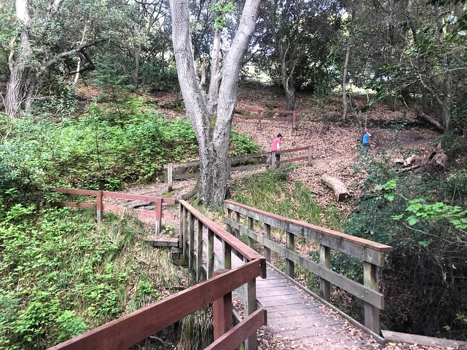 This easy loop hike is just over 2.5 miles in the Shell Ridge Open Space, and it abuts the Mt. Diablo foothills. We find street parking near the intersection of Sunburst Court and Rudgear Road. You’ll enter at the Sugarloaf-Shell Ridge trailhead near the intersection of these roads. It is well marked on the north side of Sunburst. Follow this trail until you come to the gate. Through the gate, climb the very short steep trail to the left (Franco Ranch Loop Trail). Follow this trail up and around. Continue along this trail – don’t turn on any of the trails to your right or left. At the top of this hill, you’ll have a beautiful view of Mt. Diablo and its rolling foothills. Continue along the Franco Ranch Loop Trail until you exit at the gate that lets you out onto Benham Court. Walk out the court, turning right onto Rudgear Road. Shortly after you turn right, there will be a small unmarked trail between the bushes on the north (right) side of Rudgear. Enter here for a short trail above these homes, that eventually takes you over a bridge ending at Brantford Court. Cross Brantford Court, entering the marked trail across the street. This trail will take you over another small bridge across a (currently dry) creek, and ends back at Sunburst Court where this hike begins. Not to worry if you miss the unmarked trail off of Rudgear. Simply walk along Rudgear until you reach Brantford Court, turn right into the Court, and left onto the marked trail noted above.