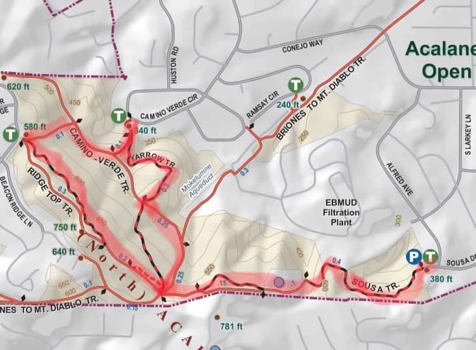 Acalanes Ridge: Sousa Lollipop Hike Map from the City of Walnut Creek Open Space webpage, found online here.